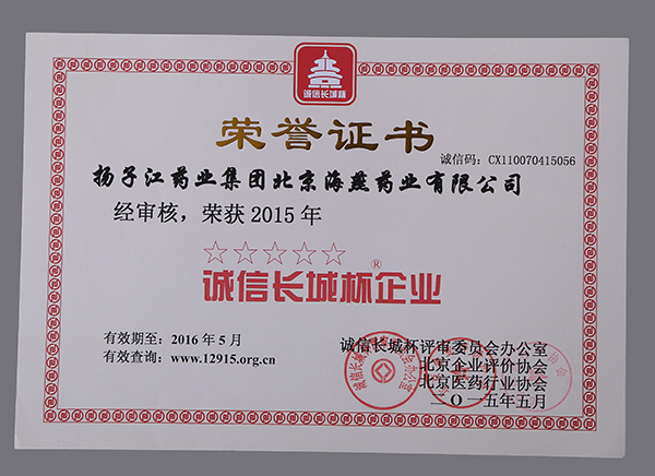 誠信長城杯企業(yè)榮譽(yù)證書