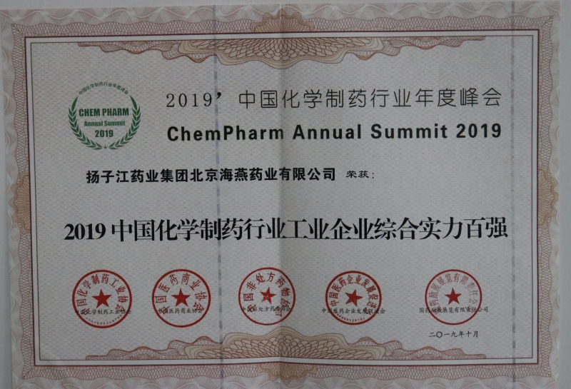 2019中國化學(xué)制藥行業(yè)工業(yè)企業(yè)綜合實(shí)力百強(qiáng)
